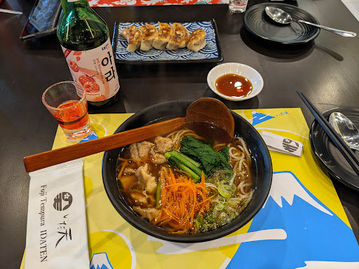 Read moreLovely restaurant with attentive staff and amazing udon/soba. The soup base for the noodle soup is incredible! My husband prefers the handmade udon, while I prefer the soba noodles. The thick, bouncy udon noodles are a wonderful texture, but I liked the soba because I felt like they absorbed more of the broth flavor. Both are amazing though. I got the meat (pork) soba, my husband got the tempura udon. You can't go wrong with either. We also tried the tempura steak rice, veggie tempura, and gyoza on another visit. The steak was very nice but I don't feel like it needed to be tempura fried. The batter didn't stick to the meat, but it was perfectly cooked. Veggie tempura was mostly good, but corn on the cob wasn't so great. I wish the mushroom stalk was cut into smaller pieces. Tomato was amazing though! Gyoza is very nice, worth getting. Didn't try the skewers yet but they looked...