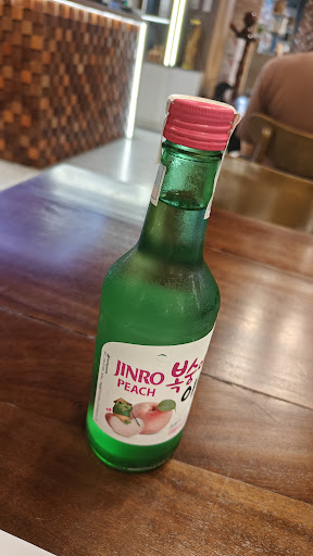 I ordered the spicy cold noodles and a bottle of peach soju.