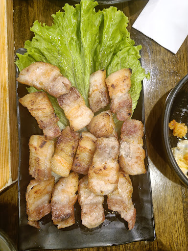 Was 9 pm and the other Korean restaurant next door was closed and was raining, so I entered this one. Glad I did, food was excellent although I was initially bummed that for bbq I was forced to order at least two sets. Ordered beef belly and pork belly and they were delicious. They also came with thick fat white mushroom that was absolutely delicious. I didn't know what to do initially so the waitress did most of the grilling, and they have this smoke suction so that you don't get bbq smell on your clothes. The menu looks expensive at first (relatively) but I was surprised that there was no service charge or tax, so the price on the menu is exactly what you pay, and I felt it was absolutely worth it. Luckily I didn't order the kimchi pancake cause they gave a free small sized one to taste. They have this dodgy "give five star review and get free drink" gimmick that many restaurants have, so I think half the reviews here are given even before assessing (I did not...