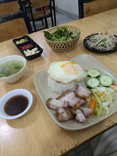 Try the Com Suon Trung for 35K. Enough for to keep you full over the night. Pork, rice salat, chili, garlic, lemon...