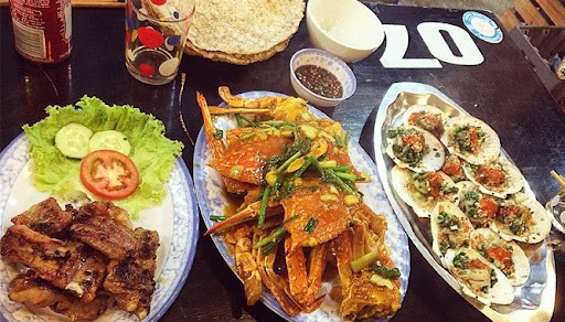Đọc foody thấy lắm người chê như đắt, phục vụ kém, đã định ... thôi. Nhưng trước khi vào Đà Nẵng đã định đến đây, thuê khách sạn cũng cạnh đó nên vẫn vào. Soi món cua đầu tiên vì thấy nhiều người chê đắt. 550k/kg thì giá hợp lý, đầy nơi đắt hơn nên gọi 2 con rang me. Định gọi chipchip vì lâu lắm ko ăn, thấy có người khen, nhưng thấy sò dương bên ngoài mà lại thích sò dương hơn, nên gọi sò dương nướng mỡ hành. Nhìn trên bể thấy con cá bơi rất chắc thịt, hỏi thì biết là cá bò. Đặt luôn 1 con nướng. Gọi thêm bát cháo hào. Thế là quay lại bàn.