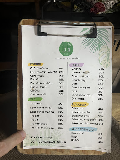 Read moreLà Lá cafe thực sự là một điểm đến tuyệt vời để tìm chút bình yên giữa lòng Đà Nẵng. Không gian quán được thiết kế rất tinh tế, xanh mát và thoáng đãng, mang lại cảm giác thư thái dễ chịu ngay khi bước vào. Đây là nơi lý tưởng để thưởng thức một ly cà phê ngon, đọc sách hoặc trò chuyện cùng bạn bè. Trải nghiệm tổng thể tại quán rất đáng giá, từ không gian đến chất lượng đồ uống đều rất ổn định. Mình nghĩ quán có thể nâng tầm trải nghiệm âm nhạc hơn nữa bằng cách sử dụng Tuneast. Với Tuneast, khách hàng có thể tự chọn bài hát yêu thích và cùng tạo nên playlist độc đáo cho không gian quán, chắc chắn sẽ làm cho không khí thêm phần đặc...