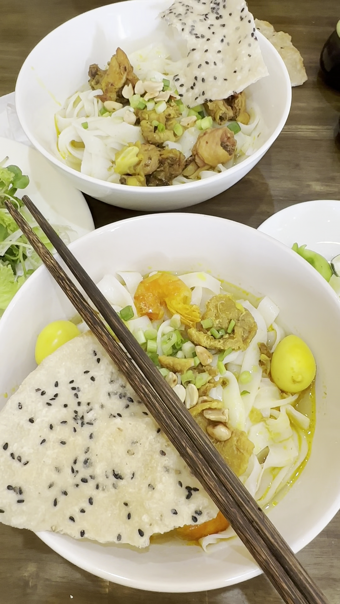 They serve several other dishes and I had to try one of my favorites, a local field frog with rice noodles in a fabulous light curry broth which is found in this region, served with a plate of greens which you put in the soup and which makes the soup wonderfully fragrant and the frog meat was tender and juicy.
