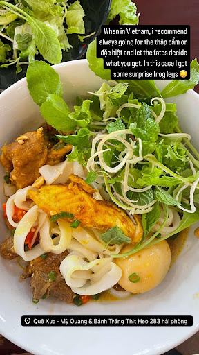 Read moreMỳ Quảng Quê Xưa is the kind of place that reminds you why central Vietnamese cuisine is so beloved—rustic, soulful, and packed with bold, honest flavor. While their Mỳ Quảng is the star of the menu, don’t sleep on their Bánh Tráng Cuốn Thịt Heo—it’s a must-try if you're after a true taste of the region.