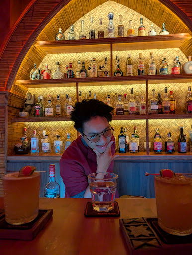 The moment you step inside, you're transported. The vibe is pure tiki escapism—cozy, dimly lit, and incredibly chill. It’s the perfect antidote to the bustling streets of Da Nang. It's not a loud, thumping bar; it's a place where you can actually sit, talk, and savor what you're drinking. Our night was made truly unforgettable by our bartender, M. His passion for his craft is infectious. Not only did he speak perfect English, but he took the time to chat with us, understand what we liked, and guide us through the menu. You can just tell he loves what he does. He even gave us a sneak peek at some of his new experimental cocktails he was working on, which was such a cool and personal touch.