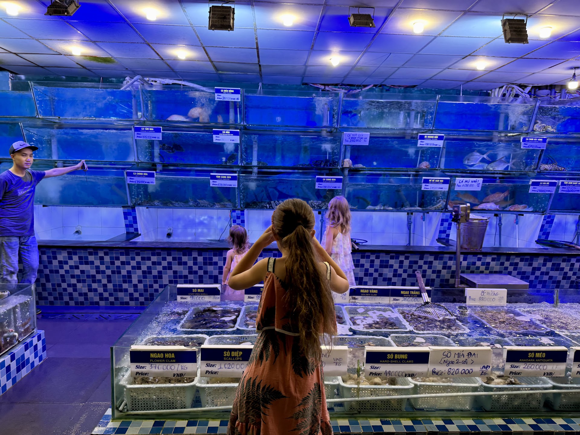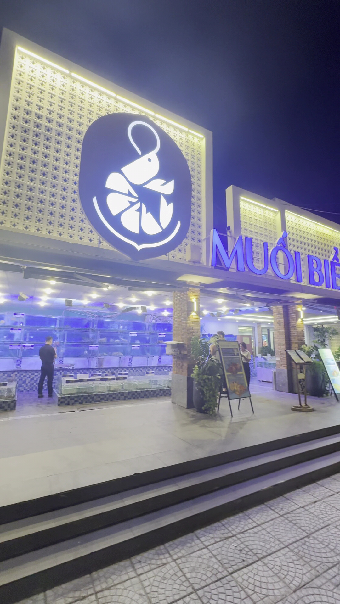 Iconic Seafood restaurant in Da Nang! A must-try if you are in the area! The location is very nice, just next to the ocean, it’s quite big inside and they have a big terrace outside (around 100 tables of 6). However, it may be full if you go for dinner. If you are more than 6 it’s better to reserve beforehand. They have menus in English, Korean, Chinese, Vietnamese and probably also other languages that I didn’t see. I added some photos with the English menu. Most of the dishes are paid per grams. The food is really wow.. you can handpick alive lobsters, fish, etc. Photos and videos below. We were a bit unlucky because the remaining lobsters were quite big and we wanted to try multiple dishes.. but we will be back! Everything that we had (Squid, clams, king prawns, water spinach - wow!, etc.)and you can see in the photos and videos below was super fresh and perfectly cooked. I highly recommend this...