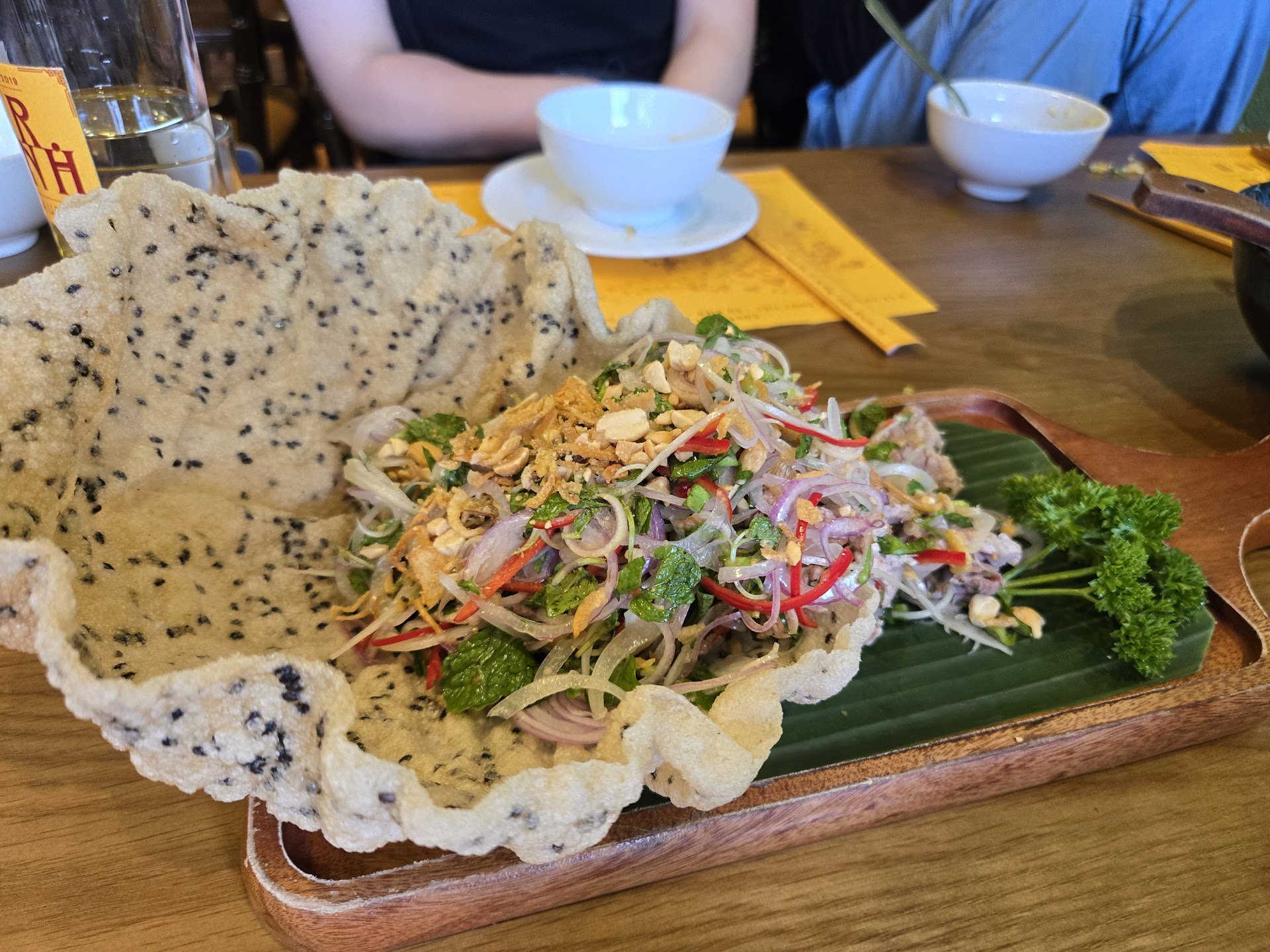 Most disappointing thing is the chef didn’t ask us in English to take video of him breaking the chicken bowl, the whole meaning of ordering that dish was ruined. For the platter, no staff at all came over and taught us how to enjoy the platter, which is a Vietnamese local dish. We just put everything into the rice paper and had it not knowing if we’re doing it right or wrong.