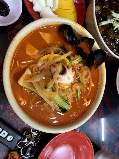 Read moreGia đình mình có ghé quán gần đây, đi 4 người lớn và 1 em bé. Điểm cộng đầu tiên là quán khá dễ tìm, giá cả các món cũng nằm ở mức tầm trung (cũng khá đắt so với 1 phần ăn). 4 người thì mình gọi 1 mỳ tương đen hải sản lớn với 1 phần mực tẩm bột chiên nhỏ. Theo đánh giá cá nhân thì mỳ tương đen cũng tạm ổn, không gì đặc sắc mấy. Sợi mì không to và hơi nhũn, đã thế quán còn để trong tô nhỏ quá, lúc trộn sốt với mì vương vải ra bàn hết trơn 😭. Mực tẩm bột thì cũng ngon, nma cuncg không đến mức tuyệt. Không gian quán thì hơi nóng,hẹp và tối lắm. Các bạn nhân viên thì khá chậm chạp, mình order mấy lần mà đứng nhìn rồi bấm đt. Nếu mà để hỏi quán xuất sắc thì mình xin nhận định các bạn hãy lựa chọn nhà hàng...