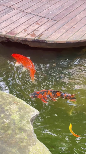 The highlight of this coffee shop is its massive koi pond, complete with mist and waterfalls, creating a visually stunning centerpiece. The landscaping and architectural design of the seating areas are exceptional, making it a perfect spot to relax and take photos with friends. There’s also a quieter workspace upstairs, along with various seating zones spread throughout the venue.