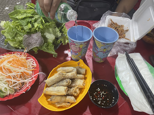 Read moreAmazing eggrolls for us foreigners and some vietnamese people I am used to cha gio for these but they sre ram cuon here. Women here was so amazing. She was so friendly and checked on us a few times to make sure we were good. This is street eating with fresh egg rolls and veggies....