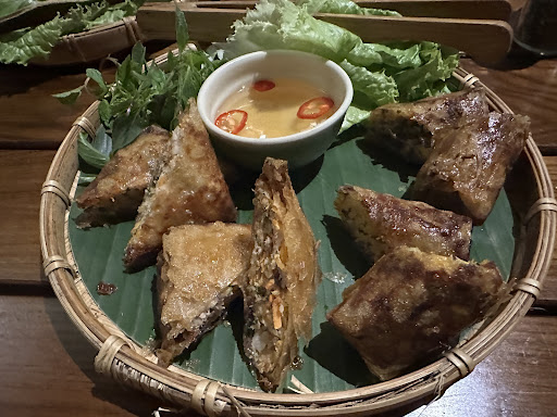 For starters my friend and I got the Chao tôm & Bo lá lôt as well as their Met Chá gio & Nem cua. Their Met Chá gio & Nem cua were our fav! Perfectly crisp, flavorful, and packed full of meat. Their Bo lá lôt was ok but the meat inside was a bit dry. For entrees we got their seared duck breast Úc Vit Nuóng Mat Ong and baby squid rice Cam gao lic và muc nuóng. Both were cooked perfectly, with reasonable portion and great flavor.