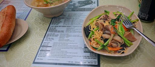 The menu features a variety of classic Vietnamese vegetarian dishes, from hearty cơm chay (vegetarian rice plates) to flavorful noodle soups like bún Huế chay and mì quảng chay. Everything is cooked fresh, often with locally sourced ingredients, and seasoned just right—not too salty or oily, which makes it a go-to spot for regulars who care about balanced eating.