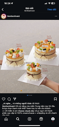 Bánh bên mình chất lượng ngon hay không chưa biết nhưng trải nghiệm mình có ở tiệm bánh thì sẽ không quay lại để chọn mua bánh dù đã mua nhiều lần trước đó. Hôm qua trong buổi tiệc, các bạn hỏi bánh chị mua ở đâu, LInh nói chị mua ở tiệm Vani nhưng các bạn không nên mua ở đây vì thái độ của bạn nhân viên ở đây không ổn, có nhiều sự lựa chọn khác tại Đà Nẵng với sự dễ thương dành cho khách.