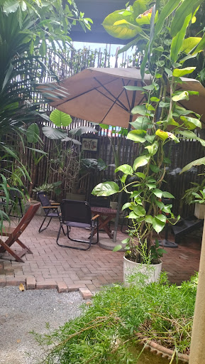Quán cà phê này như một mê cung xanh giữa lòng thành phố ồn ào. Vừa bước vào, tôi đã bị cuốn hút bởi không gian tràn ngập cây cối, những tán lá sum suê đung đưa trong gió nhẹ. Những chậu cây nhỏ xinh được đặt khéo léo quanh khu vực ngồi, trong khi dây leo xanh mướt bò lên tường và cột, tạo nên một bức tranh thiên nhiên sống động. Chiếc ô lớn che mát giữa sân gạch đỏ càng làm tăng thêm vẻ mộc mạc, gần gũi. Ngồi xuống chiếc ghế gỗ, tôi nhấp một ngụm cà phê đậm đà, ánh mắt lơ đãng ngắm nhìn những chiếc lá rung rinh. Tiếng chim hót líu lo hòa cùng tiếng xào xạc của lá, như một bản nhạc không lời, xua tan hết mệt mỏi thường ngày. Không gian yên bình này khiến tôi cảm thấy như được trở về với thiên nhiên, quên đi khói bụi và nhịp sống hối...