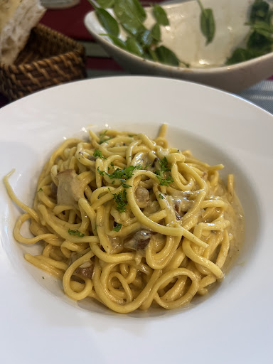 We had to ask if it was okay to sit down because it wasn't clear; they just handed us a menu in Vietnamese and waited for us to respond while we were excited to see the fresh pasta. When I asked if one of the dishes was vegetarian, the staff simply mentioned the bakery on the other side. When I asked for recommendations, she replied with "YES" but didn’t provide any further information. I don’t think she understood my questions Unfortunately, my pasta was undercooked (still white in the middle). The sauce was okay, but my stomach hurt after just a few bites, so I stopped eating it. No one even bothered to ask why I left it full. One of the main reasons I love good Italian restaurants is the atmosphere, but it just wasn’t there, unfortunately. They don't have wines here