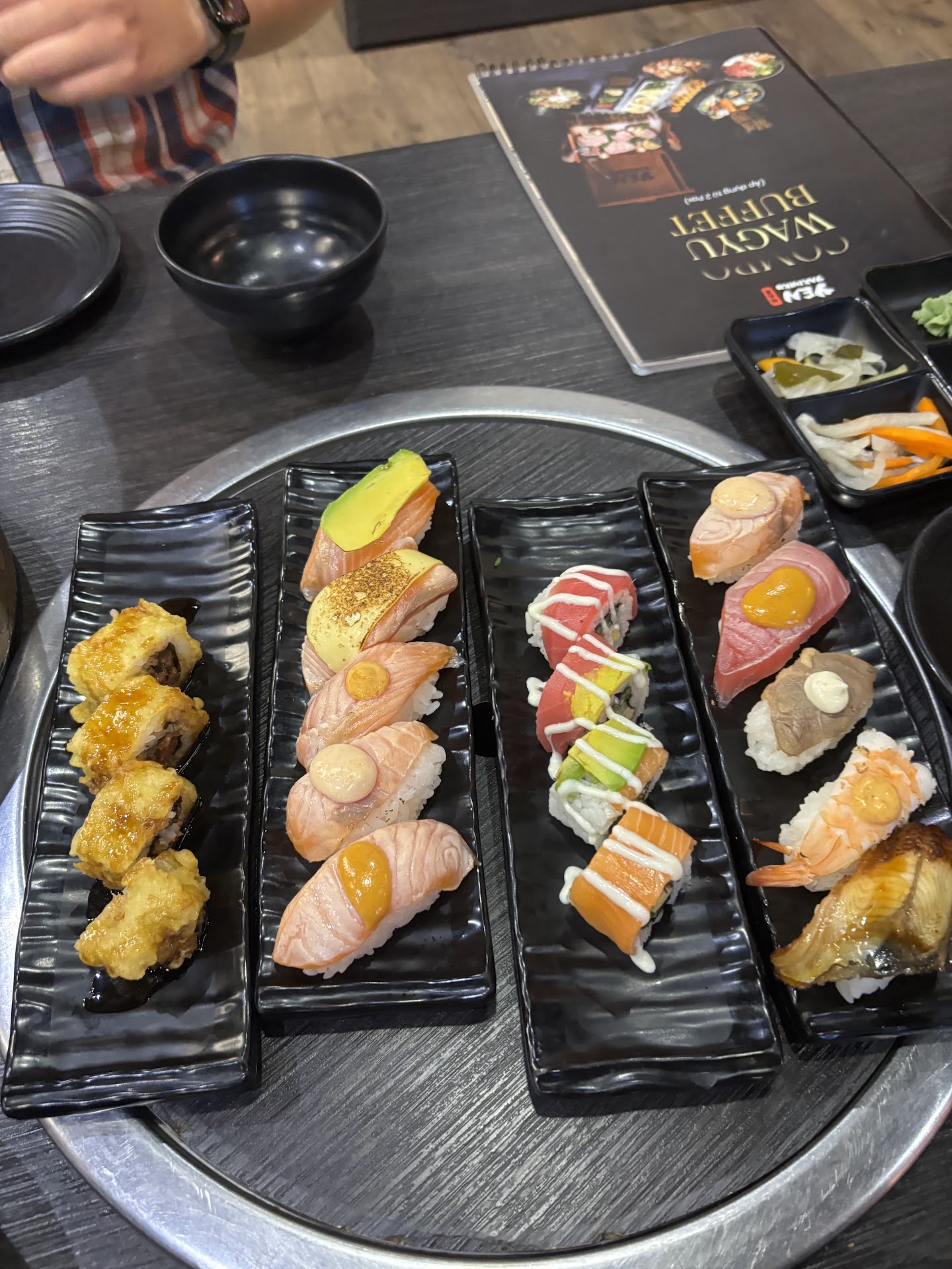 What makes the experience even better is the variety—sushi, sashimi, hot dishes, side salads, and dipping sauces that tie everything together. The buffet is constantly restocked and never feels picked over. And the service? Fast, attentive, and always helpful without hovering—exactly what you want in a self-grill setup.