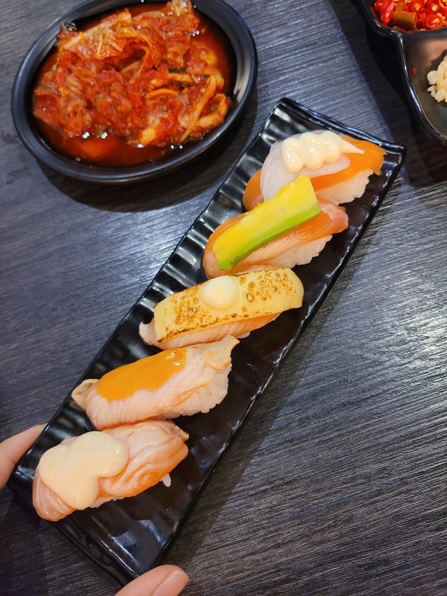 Read moreWe came to try buffet and order some seafood, sushi and a lot of different things. They don’t have normal physical menu so you have to do it on the phone which I hate so much sometimes because these small fonts and all this zoom in, zoom out to choose something. I have bad eyesight and I understand that it’s my problem. The food was overall fine but some pieces from sushi or salmon tasted kind of nothing and didn’t have that fishy taste, which was slightly disappointing while others were good, so it was mix of both. The service was great overall and everyone was helpful. The biggest thing that triggered me is when they force you take your shoes off, and the place if very dirty. I understand that I can maybe ask to clean but can you imagine how awkward it is to ask the busy staff when the place is full of people, to ask to mop the entire room. It’s disgusting to be honest. First I even wanted to leave but I didn’t want to upset my partner and thought maybe it will be okay but the floor was even worse at the table, it was sticky as hell, there were tons of food cramps and I had to put paper towel under my feet and hope that no one had any foot disease who sat here. Disgusting.