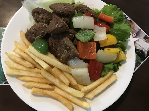 (We had: Ste*k and chips, Kimbap (sushi), mixed steamed dumplings, ice salted coffee and...
