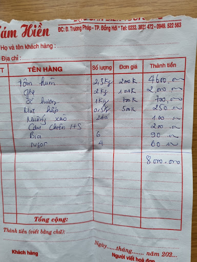 Read moreMình vừa có trải nghiệm cực kỳ tệ tại nhà hàng Tám Hiền, đường Trương Pháp, Quang Phú, Đồng Hới, Quảng Bình.