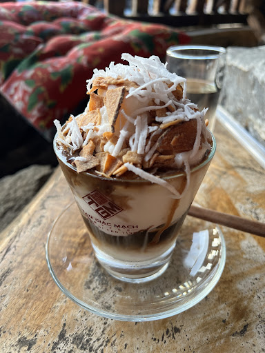 Coffee Tam giác mạch (nâu) Mới đầu khi order món này mình còn tưởng là cà phê pha máy, thế xong rồi món ra mới biết là cà phê phin. Bỗng dưng vào quán gọi đúng món này làm nhớ về ngày xưa quá. Ngày bé tầm 2-3 tuổi, sáng nào ông nội cũng ẵm trước ngực đi uống cà phê phin của người bác, một đoạn sữa đầy, một vài giọt cà phê tí tách rơi...Bắt đền quán vì làm bản thân phải lặng yên vài phút nhìn vào ly cà phê để nhớ về những kí ức ngày còn ông nội đấy =))) Tuy nhiên thì, chắc có lẽ không hợp gu với cà phê nên là mình cảm thấy nó giống cà phê ở dưới miền Nam hơn, ngọt và không cảm nhận được vị đặc trưng của hạt tam giác mạch trong này. Ơ nhưng mình quên chụp ảnh mất rồiiiii...🥺