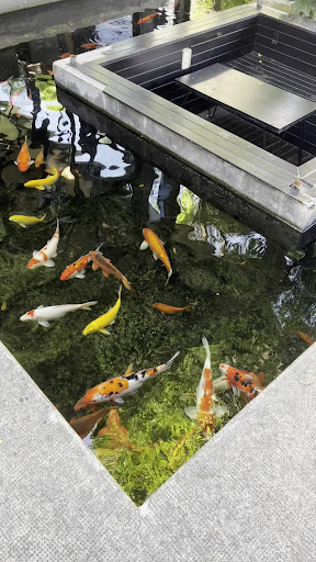 Decor and atmosphere is industrial minimalist jungle with glass walls floor to ceiling welcoming the light in all angles and breeze from the seaside Da Nang. It's surrounded by a pond of happy Koi fishes in the perimeter and various tropical fish plants all around, both elegant and serene.