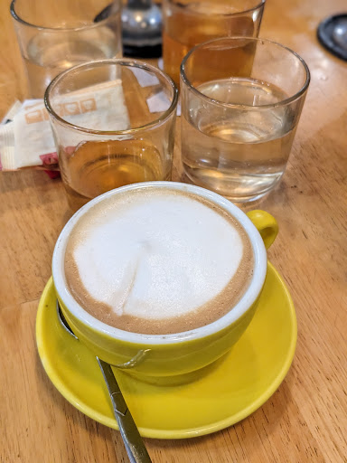 The location is nice and just next to the lake but im dissappointed about the table was sticky and as you can see i order 1 milk tea (tra sua) which was half of the glass with ice and basically i paid for the ice and the glass was small the price is too high for the half ice of the glass, at least if the ice was less like 30%...