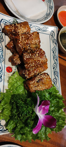 Read moreKhông gian: Tương đối rộng rãi và thoáng đãng. Nếu bạn chọn bàn ở tầng 1 thì sẽ thấy rõ điều đó. Có đủ chỗ cho nhóm bạn lên tới 30 người. Nằm ở vị trí khu đô thị mới, yên tĩnh và có chỗ đỗ xe thuận lợi nên sẽ rất tiện cho ai có ô tô và muốn tìm một quán ăn như vậy. Quán được dựng theo phong cách Lương Sơn Bạc nhưng không được đầu tư tới nơi tới chốn. Bạn sẽ dễ dàng nhận ra khi tới quán, ngoài chiếc cổng chào, mái ngói, cột kèo ra thì những phần còn lại đều của hiện tại với cột bê tông, tường gạch rất dễ nhận ra,.. cho nên không lý tưởng lắm nếu bạn nào đó muốn có chỗ check-in. Phục vụ: Khá nhanh nhẹn nhưng còn khá nhiều thiếu sót khi xử lý những tình huống như không xác nhận lại món đã đặt từ thực khách hoặc khi giao nhầm món thì cố ý lờ đi. Khi được yêu cầu đổi món thì điều đầu tiên là muốn khách dùng tạm. Mặc dù sau đó vẫn đổi món cho khách do khách không đồng ý nhưng điều này khiến thực khách như mình thấy không thoải mái. Khi tính hoá đơn có những món mà nhóm mình không gọi cũng được tính vào đó như lạc rang, khăn ăn... Mặc dù không đáng bao nhiêu nhưng điều này cho thấy sự thiếu chuyên nghiệp trong phục vụ và chăm sóc thực khách. Các bạn nên lưu ý. Đồ ăn: Thực đơn không phong phú cho lắm khi có rất nhiều lựa chọn (ngỗng, cá, rùa, trâu, mực...) trong thực đơn nhưng lại chỉ thông báo khách tập trung vào các món chính chế biến từ gà đồi, bò tơ và lợn mán. Nhưng những nhóm ăn đi vào ngay sau đó thì lại được giới thiệu thực đơn nhiều món hơn. Điều này khiến mình hơi khó hiểu. Được cái giá cả các món không quá đắt. Mình ăn 2 người hết 375k (1 đĩa bò tơ cuốn bánh tráng, 1 đĩa sườn nướng tảng, 1 đĩa măng trúc xào nấm, 1 đĩa dưa chuột bao tử, 1 đĩa cà chua bi, 2 lon coca)