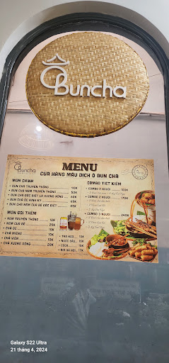 Quán có diện tích vừa phải, được bố trí gọn gàng và sạch sẽ. Biển hiệu "Ô Bun Cha" nổi bật với màu sắc tươi sáng, dễ dàng thu hút sự chú ý của người qua đường. Bên trong, quán được trang trí đơn giản nhưng tinh tế, với những bộ bàn ghế gỗ mộc mạc và các bức tranh về phong cảnh Hà Nội, tạo nên không gian gần gũi và ấm áp.