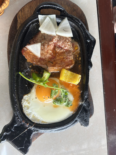 -walked in and 4+ tables were not cleaned from previous patrons. -staff inattentive, walked in and was not given a menu, so grabbed it ourselves even though they were not that busy -ordered the beefsteak and it did not come out sizzling, it was raw and needed to be reheated. -beef on both plates were not consistent. One was smaller than the other. -we were not given enough cutlery between 2 people -butter knife to cut a steak..... -asked for the coffee to have blended ice and the female manager said this can be done, but was given a normal coffee. -most restaurants have cutlery on their table, except this one