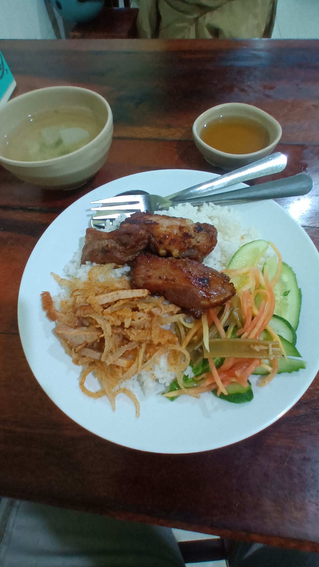 Read moreCơm ngon, thịt nướng ướp đậm đà. Mình gọi cơm sườn cọng + bì giá 35k, hợp lý so với mặt bằng chung. Ngoài ra, quán còn bán nhiều món khác nhau, chủ yếu là cơm món cho buổi trưa. Không gian rộng rãi, nhiều bàn. Có thể sẽ ghé lại...