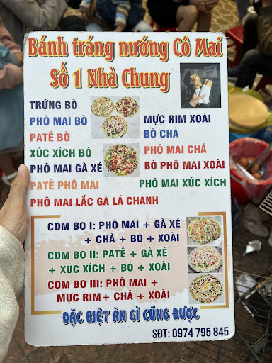Read moreĐối với người thích đi Đà Lạt như mình cũng như là mê ăn bánh tráng nướng thì đây chính là chỗ mình và cả gia đình đều khen ngon 🤤 Bánh Tráng Nướng Cô Mai 📍Số 1 đường Nhà Chung, Đà Lạt Mình không nhớ là cô nói bán từ mấy giờ, hình như là từ 4h chiều đến tối khuya luôn. Gửi xe Free, chủ yếu là để đối diện rồi qua bên đường ngồi ăn chút xíu rồi đi. Cô bán cũng nhỏ thôi thành ra chất lượng bánh tráng rất đỉnh. Giá bánh dao động từ 22k đến 30k và cái đặc biệt “Ăn gì cũng được” là 40k (có tất cả topping). Bánh ở đây cô nướng đều tay nên giòn, ngon, trứng và phô mai béo ngậy. Một cái bánh buổi chiều ăn thì có thể no đến tối mới ăn lại. 👍 Đây thật sự là một chỗ recommend vì trước giờ Vi ăn nhiều nơi nhưng chỗ này khiến Vi ăn tận 2 lần trong 2 ngày vì ngon, cô chú dễ thương~ Không có gì để chê hết nên Vi rate 5/5🌟 vì giữa thời tiết Đà Lạt thì quầy bánh tráng Cô Mai xứng đáng được mọi người thử nè...