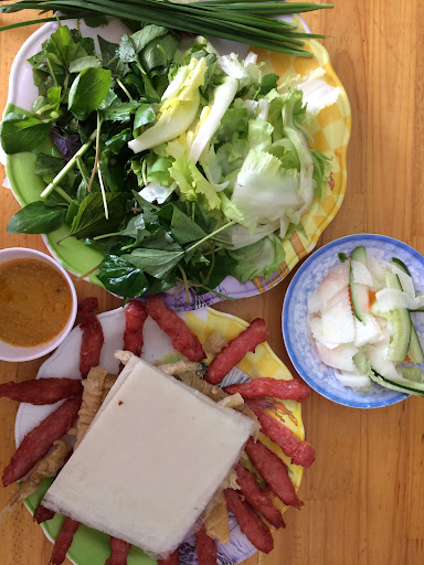A bit pricy for us but the food compensated all. (80.000 đ ~ $4 for 2 people, no drink) The restaurant was spacy, crowded but quite clean. No menu so it was quite tricky to order. I think it was counted by sets. 1 set for 1 person. At first, the portion seemed too small for us. But when we started eating, it was the perfect fit for us. Not too full, not too hungry. With the veggies, the portion was well calculated. The "nem" was ok, nothing special. In fact I think the peanut sauce was actually the star of this dish. Not too sweet nor too salty, it had a mild taste that paired well with the "nem" and the vegetables. We ended up asking for more of this sauce to enjoy with the rolls. This was one of the few places that impressed...