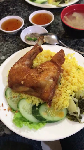 Nói về thức ăn: Giá ổn. Gà dai. Phần cơm đầy đặn có kèm canh và 1 ly nước ngọt. Mình gọi và bạn nhân viên làm sai món. Mình vẫn ok ăn nhưng ko nhận được 1 lời xin lỗi nào từ bạn. Nói về không gian quán: Quán nhỏ. Không gian tù túng. Nhà mình 4 người lớn, 2 trẻ em bước vào quán khi ấy chỉ có 1 bạn nhân viên, bạn ko thèm ngó gì tới gia đình mình, bạn tập trung chiên cơm. Mình nhìn quanh chỉ có 1 bàn có khách, còn lại 5 bàn trống. Tuy nhiên, 1 bàn thì còn chén đĩa dơ trên bàn, 1 bàn thì lại để 1 đống tương ớt nhân viên đang vào bịch dở dang, 1 bàn khác thì ghế để mấy nồi cơm inox trống. Nói chung k có bàn nào ok để ngồi cả. Minh phải nói bạn nhân viên dẹp đĩa của khách trườc để gia đình mình vào ngồi. Khu vực bếp thì cơm văng vương vãi. Chồng mình đi WC ra thì bỏ luôn đĩa cơm ko nuốt nỗi. Chồng mình bảo WC siêu siêu dơ, thức ăn thừa các bạn đổ ra sàn, bốc mùi...