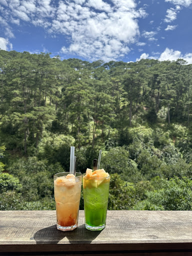 Read moreĐiểm cộng: Tổng quan rất okela. Ban đầu coi review tiktok thấy cũng giống các quán chilly khác nhưng đến thì oh wow thật sự, really awesome nha các bạn Đồ uống ngon, làm nhanh. Uống các loại trà đỉnh chóp (mình gọi trà vải với trà dưa lưới hạt chia uống ngon thiệt luôn á). Tưởng mấy quán cafe đà lạt nước uống gọi cho có chứ vô quán này là để uống cafe với trà thiệt nè 😊 À nữa là đồ uống có hoa quả thiệt nha, đầy cốc luôn á vừa uống vừa nhâm nhi. Chưa thấy quán nào ở đà lạt có tâm tới z View thì khỏi bàn. Bạn nào thích vibe núi rừng cây cỏ, đọc sách thưởng trà nhâm nhi rồi connect w nature thì xin mời. Quán nhìn thẳng ra là cả 1 đồi cây xanh mướt, gió lay lay hết sảy Khăn trải bàn họa tiết hoa lá cành cute, chụp lên hình nhìn vừa retro vừa vintage Nhân viên quán mập, cụ thể là mấy bé mèo với cún. Rất quấn khách, ko ngại người lạ và thích vuốt ve. Khách vừa ngồi xuống là nhân viên mèo chạy ra phục vụ rồi hehe Có máy refill nước lọc nóng lạnh. Uống hết cafe thì cứ lấy khỏi cần gọi thêm nha các bạn