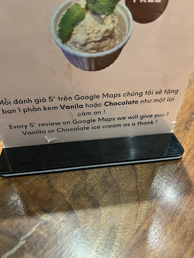 We were confused by the high rating on Google Maps, but when we flipped the card on the table, it started to make sense. "Free icecream when you give 5 stars".
