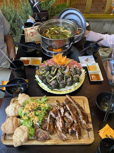 Read moreQuán to rộng nên ngồi ăn thoáng mát. Mấy bạn nhân viên khá nhiệt tình, trời mưa còn mang ô ra đón khách tận cửa xe và cho khách mượn áo khoác mặc ấy ạ. Đồ ăn hợp khẩu vị nhà mình, gia vị ướp dễ ăn nhưng chất lượng thịt ko phải quá xuất sắc đâu, mình thì thấy hợp lí với giá tiền nên ko có gì đáng chê. Phần nướng chấm sốt trứng muối rcm mng nên thử, lẩu cũng dễ ăn và nhiều rau nữa👍🏻. Khẩu phần này nhà mình 4ng ăn hết hơn 700🐠 mà no bụng còn phải mang về bớt mấy miếng sườn đó. Nchung là nếu mng tìm chỗ ăn no bụng và giá cả phải chăng thì quán này...