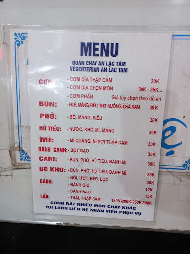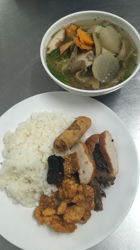 Read moreCheap and tasty veggie meal of either a huge plate of rice with mock meat & veg of your choosing (just point to what you want behind the canteen style deli counter) or a noodle soup with assorted veggies and mock meats. 55k dong for these two dishes. Price can't be beat. We preferred the veg restaurant near the golden Buddha but this one was decent and near our hotel. Saw a group enjoying a hot pot too. Some of the mock meats are not the hottest but that's to be expected as they're sitting out in a deli style counter. The rice is hot and fresh. Can't fault it for...
