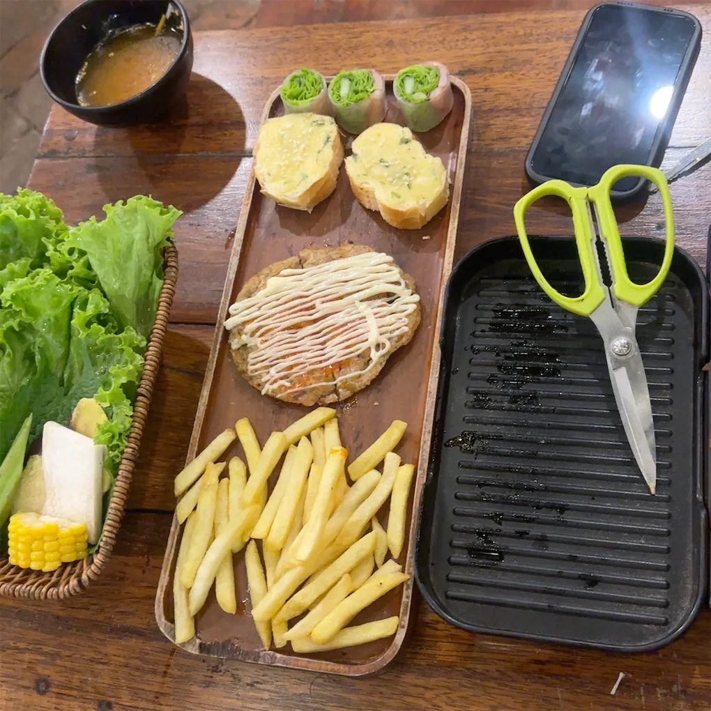 Nước chấm: nước chấm chưa được đa dạng, chỉ 2 sốt chấm chính để chấm thịt ( muối ớt xanh, muối ớt đỏ thì phải). Mình nghĩ các bạn nên đi kèm chủ động các loại nước chấm thay vì mình nhờ các bạn đem ra: vd: khoai tây chiên các bạn có thể đi kèm với tương ớt / bơ đường; gỏi cuốn ăn kèm mắm nêm/ nước tương; Nầm heo đi kèm với chao ( quán kh có chao luonn) … Các loại thịt: Mình ưng nhất là bò ba chỉ cuộn măng tây/ kim châm; Thịt nai; Xiên bò rau củ- Nêm nếm ngon. oke bò beefsteak mang ra thì còn đông đá, nướng lên cắt nhỏ nhưng ăn vẫn daii nầm heo ăn khá oke cho đến khi mình thấy được miếng dị vật trong món nầm 🥲. Mình có gọi bạn NV nam ra để đổi cho mình. Nhưng đợi hồi lâu sau vẫn chưa thấy bạn đem ra lại, cũm kh có 1 lời xinloi nào. Chỉ thấy bạn ngồi bấm đth. Xong mình đành gọi bạn NV khác ra để hỏi , bạn NV nữ thì oke hơn. Sau khi biết đc sự việc bạn có xinloi mình liền, và nhanh chóng mang món nầm ra cho mình. Còn hải sản mình thấy kh được tươi cho lắm, bạch tuộc và tôm khá bở. Các món gà, cá mình kh dùng nên kh có đánh giá. Do dùng set buffet cao nhất nên có đi kèm tráng miệng, dùng khá okee. nchung mình sẽ...