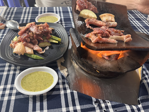 Read moreOrdered a mixed plate including porcupine, beef, goat, deer, pork etc. I think they use the same marinate (looks like chili sauté) for majority of meat dishes. Porcupine meat tastes strangely delicious. Do not recommend frog for grilling as the meat and skin will stick to the hot tile (but the meat is absolutely delicious). High price.