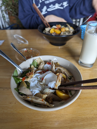 We ordered banh uot dac but, banh uot ga, and chao ga. Both banh uot ga seemed to be a mini version of the dac biet other than the cha — it had unhatched egg and liver. I liked the flavor of the banh uot a lot but I was disappointed that the only organ meat was liver. And it was an overwhelming amount of liver. Liver is my least favorite but I enjoy a bite or two when it’s balanced with everything else. There was more liver than the chicken, too.