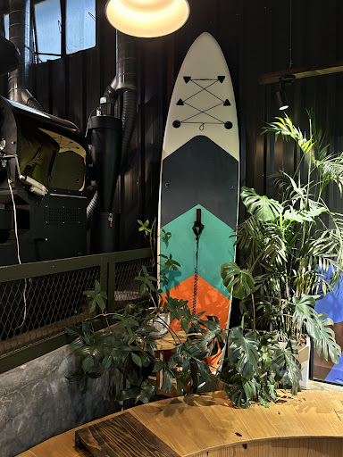 Read moreThis coffee shop is designed with a modern industrial style, featuring an open space that combines metal and wood materials, creating a strong yet cozy atmosphere. Eye-catching elements like the paddleboard and green plants add vibrancy and visual appeal. The roasting and brewing area is well-organized, with informative boards about different coffee beans, providing customers with more insight into the products.