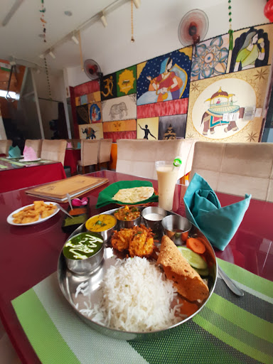 Read moreThe Sagar is located on one of the several roads leading towards the lake. It seems to be a bit removed from the general hubbub of the tourist area, but is in fine company, as there are several fine restaurants and cafés around it. The ambience is very Indian, with bright maroon-pink sofas and curtains, and colourful Indian-themed wall murals. There's a garlanded, marble Ganesha at the cash counter sending out blessings to all diners. There's seating on two floors, both equally good. There's plenty of natural light streaming into this beautiful restaurant. I ordered a vegetarian thali. It was pretty large when it came, with a huge buttered garlic naan, rice, a mixed veg curry, palak paneer, dal, raita, gulab jamun and papad. Chutneys and onions in vinegar came as accompaniments. The food was delicious and authentically Indian, without being too greasy or thick. I really enjoyed my meal, a bit of India to remember so...