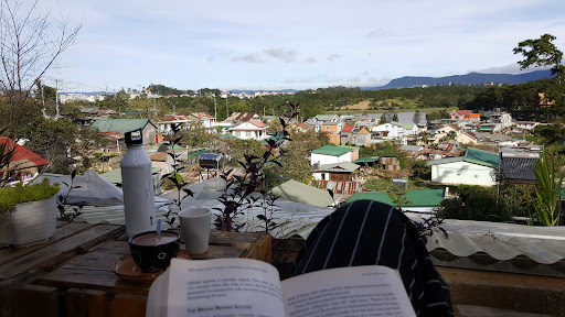 Read moreĐược thằng bạn thân review rất nhiều, bạn ấy bảo đến sunshine và buổi sáng rất đẹp. Nhưng vì ở xa nên lần này mình cùng bạn ấy đến buổi chiều. Đây là lần đầu đến với quán. Vừa đến, mình ấn tượng nhất là con đường dẫn từ trên chỗ đỗ xe xuống dưới quán. Đó là một hàng bậc thang rất dài, hai bên trang trí nhiều bánh xe được tô màu và các tranh vẽ trên tường cùng cây cối. Xuống đến quán, mình nhìn chỗ ngồi nào cũng rất đẹp. May mắn là chúng mình chọn được một chỗ có thể ngắm được Đà Lạt từ trên cao. Vì ngồi chờ bạn đến nên mình có đi loanh quanh thì phát hiện ra còn một lối xuống phía dưới nữa. Đường này yêu cầu bạn phải đi nhẹ nhàng và yên tĩnh. Dưới đó là khu đọc sách, mình thấy rất nhiều bạn ngồi đọc sách dưới này, xung quanh cũng có nhiều giá sách nữa, mình nghĩ nếu mình ở Đà Lạt thì chắc chắn ghé đến đây thường xuyên. Quán này mình phải vào tận nơi để gọi đồ uống, mình thích cách phục vụ này vì sẽ tạo cho khách sự thoải mái. Bạn nhân viên cũng rất nhiệt tình, mình là người lần đầu nên bạn ấy tư vấn cho mình đồ uống phù hợp. Giá ở đây cũng hơi cao như ly của mình smoothy dâu là 35k nhưng để mình thấy Đà Lạt và ngồi buôn chuyện với bạn bè thì quá ok. Chúng mình ngồi đây, kể với nhau những câu chuyện của thời kí ức và ngắm Đà Lạt trên nền nhạc du dương. Đây là buổi chiều mình cảm thấy không phí hoài vì chọn Sunshine làm điểm đến cho chuyến đi tìm hiểm về Đà...