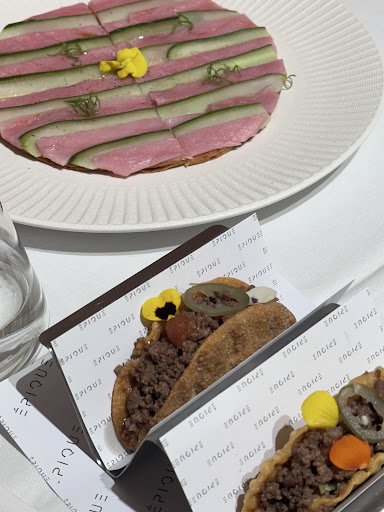 Absolutely loved the "Salmon taco"! Delicious salmon sashimi served in a crispy taco shell. It was so good we had to order another.