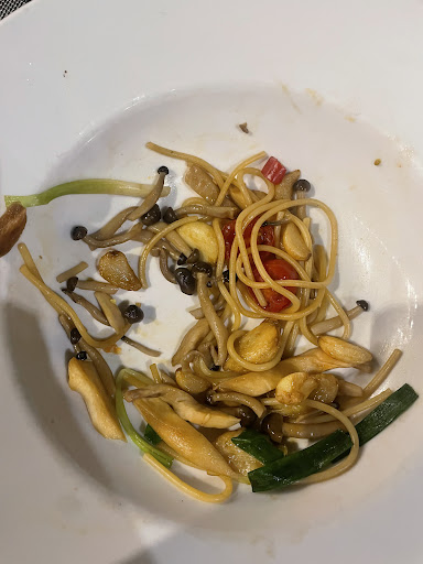 Về phần steak của mình quá quá thất vọng. Rau củ nướng đi kèm không hề phong phú mà chỉ có súp lơ xanh + trắng để lên cái khay gang đó trực tiếp thì phải :))) nên phần úp thì cháy mà phần ngửa thì nguyên. Thực sự không hiểu được tại sao có thể phục vụ khách 1 món quá ẩu như thế. Thịt bò thì cũng quá nhạt nhẽo, dai, hơi sống quá so với mức mình yêu cầu nhưng sauce tiêu mình gọi kéo lại 1 chút nên mình phải vừa đút cho người yêu ( ăn hộ 😂) vừa cố ăn nốt vì giờ nói với bạn trai thì bạn mình sẽ thất vọng vì chọn quán sai mất =)))))) = Hết nhưng cố đấm ăn xôi. Khoai tây nghiền mình k muốn đụng nữa. Rút kinh nghiệm sau vào mấy quán như này không nên gọi steak vì không chuyên, mình thích ăn ở Elgaucho hoặc Moo hơn, hoặc Steak Out ăn cũng rất OK.