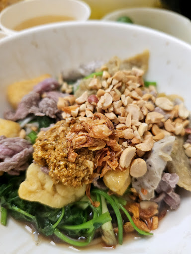 MIẾN TRỘN CHỢ PHÁO ĐÀI LÁNG Chắc đây là quán miến trộn, bánh đa trộn quen thuộc của bao thế hệ sinh viên trọ khu Pháo Đài Láng nhỉ, mình cũng không ngoại lệ đâu 😂 Mình ăn từ hồi cô còn bán vỉa hè, trời hè nóng bức mà quang gánh của cô vẫn tấp nập kẻ mua về, người ngồi lại ăn 😊. Giờ cô đã chuyển ra mặt bằng mới, là một quán nhỏ xinh xinh thôi nhưng đủ cho khách ngồi thoải mái. Khách đến đông thế nào cô vẫn nhớ thứ tự, hỏi lần lượt từng người xem ăn gì? Trộn hay nước? Ăn rau cần hay rau muống? 😂. Rồi suất của các anh bao giờ cũng đầy đặn và nhiều hơn các chị một chút, rất tinh tế ^^ Mê miến trộn ở đây ở nhiều điểm, nào là sợi miến trụng vừa tới vẫn mềm dai, quyện lấy nước trộn xì dầu đậm đà 🥰. Mỗi bát đều được cho 1 thìa gạch cua nhỏ xíu nhưng chất, dậy vị thơm lừng. Thịt bò được trần khéo, chín vừa tới nhưng vẫn phớt hồng. Còn có giò bò, đậu rán và miếng chả cá mỏng dính hơi dai dai ngòn ngọt ❤️ Nhưng mê nhất, vẫn là phần rau muống trần kia. Không biết cô trần rau kiểu gì mà ăn lại giòn thế, chín kĩ mà vẫn giòn ngọt, xanh mướt 😋. Chắc do trần rau sống vào nồi nước dùng sôi sùng sục, nên rau vừa giòn ngon mà nước dùng lại có vị ngọt thanh thơm thơm (mỗi suất đi kèm 1 bát nước dùng nha) Nhớ ngày xưa mấy chị em ở trọ với nhau, lười nấu cơm nên đi mua miến trộn về ăn chung. Kỉ niệm vừa vui vẻ, vừa thơm mùi gạch cua, mùi xì dầu, lại đậm chất sinh viên ❤️ 📍Địa chỉ: Số 67 Pháo Đài Láng (đừng nhầm với hàng bán vỉa hè đối diện nhé) ✅ Giá rổ: Mình ăn suất đầy đủ có thịt bò là...