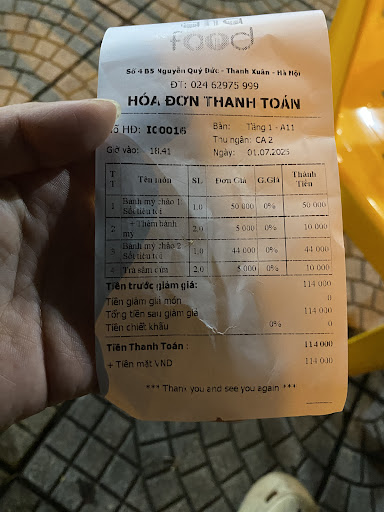 Read moreMình và bạn hôm nay có ghé Aha food và gọi 2 suất bánh mì chảo đặc biệt, 1 cốc trà đào. Họ đang có chương trình mua 2 tặng 1, bọn mình không được tặng như họ nói với lí do sau ghi gọi điện hotline và nhận được câu trả lời từ bạn nhân viên rằng sợ 2 người ăn không hết. Một lí do hết sức vớ vẩn. Bạn đó chỉ xin lỗi nhưng mình không đánh giá cao chăm sóc khách hàng của Aha food Nguyễn Quý Đức, ít nhất cũng nên nói rằng lần sau quay lại họ sẽ tặng sau hay sao đó. Tuy đồ ổn nhưng với cách xử lý như này, mình chắc chắn...