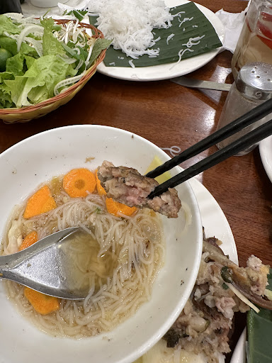 Given the above-average pricing, I expected a higher-quality meal. Instead, it turned out to be a fairly standard bún chả, nothing particularly special. The portion of noodles was on the smaller side, and the quantity of meat wasn’t generous either, you could easily count the number of pieces in the bowl. That said, the meat portions themselves were large and flavorful, and the broth was decent. They also provided a full bowl of raw vegetables, though the quality was average. Despite the meal looking modest in portion size, the larger meat pieces made it quite filling overall, so I’d consider it a decent though unremarkable meal.