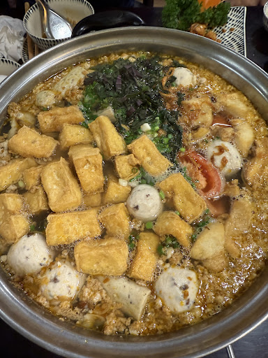 Lang thang tìm quán lẩu riêu phố này xong hú hoạ bừa vào quán Bùi Gia thế mà ăn okela phết nhé mn. Bọn mình đi 4ng gọi 1 lẩu riêu vừa, 1 sụn gà chiên mắm nhỏ, 1 tóp mỡ thêm vừa, quẩy, âu trà, hành khô thêm, sau gọi thêm đĩa bắp bò 150k và 1 tóp mỡ vừa nữa thì hết 815k. À, vì mẹt có 3q trứng sợ sứt mẻ tc nên phải gọi thêm 1 trứng vịt lộn nữa nha. Cá nhân mình thấy giá cả như vậy là phù hợp, nước lẩu ngon ngọt, riêu cua ăn thơm. Đặc biệt là bò ở đây ngon nhé ạ, ngọt thịt và tươi chứ ko phải kiểu vừa lấy ra từ tủ đông. Chúng mình 6h đã có mặt ở quán ăn r nên là lúc ý chưa có ai nên ko khí ko ầm, lẩu thì ăn tầng 2 riêng biệt vs khách đi lẻ. Mn có ghé qua phố Nguyễn Văn Tuyết thì trải nghiệm nhé. À điểm cực cộng nhé, bát đĩa ở đây cả cốc uống trà và hũ đựng gia vị đều đc setup đồng bộ và ko phải nhựa nha mn, kiểu gốm sứ đó nên mình rất ưng cái này ạ, cảm thấy chủ...