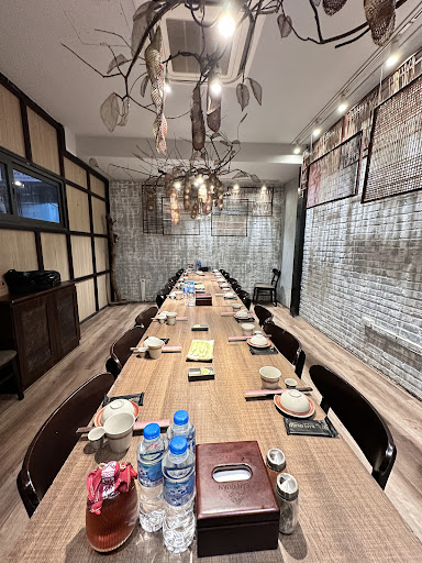 🏠 Không gian – decor: Phòng riêng rộng rãi, đèn treo, bàn gỗ dài, tone mộc, ánh sáng ấm — ngồi nhóm 10–20 người “rôm rả” mà không ồn ào, riêng tư thoải mái.